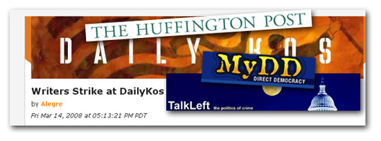 Clintontrogna bloggare håller tex en writers strike (dvs de tänker inte skriva några inlägg eller kommentarer) på demokraternas populäraste blogg Daily Kos. Där liksom inom stora delar av demokraternas bloggvärld dominerar Obama-anhängarna. Sajtens ägare är en av skribenterna av ”Crashing the gates” och heter Markos Moulitsas Zuniga (mer känd som ”kos”).
