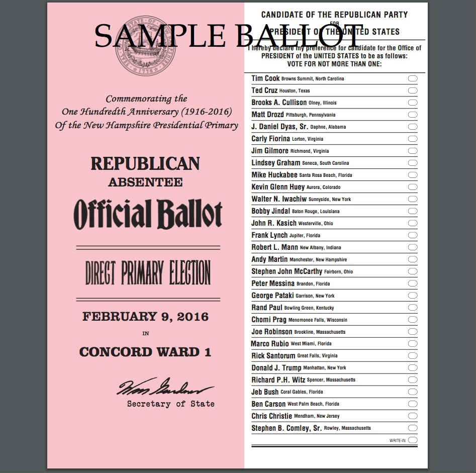 Men väldigt många namn. Tydligen slumpas ordningen fram genom att en bokstav dras, tex V och då börjar listan med kandidater som har ett efternamn på V. Sedan i bokstavsordning. Enligt uppgift kostar det $1000 att placera sig på valsedeln och dessutom behövs det ett antal signaturer.