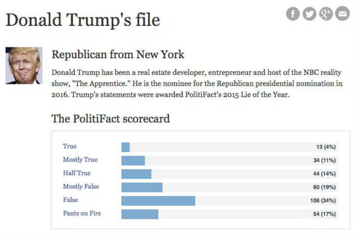Under ett kampanjmöte i Florida igår kväll sa han att faktagranskare är ”a group of dishonest scum”. Politifact svarade på det med en länk till deras förödande genomgång av Trumps påståenden.
