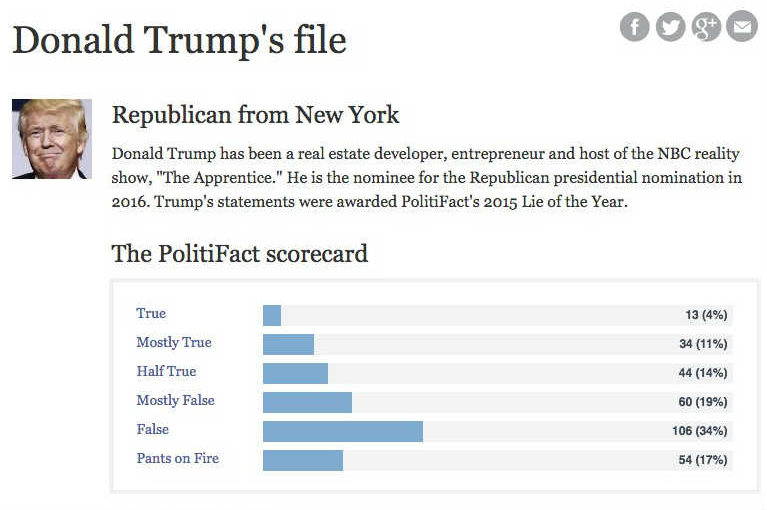 Lite förståeligt är hans uttalande eftersom Politifact lutar en aning åt vänster. Wikipedias artikel om Politifact nämner undersökningar där republikaner fått fem till tio gånger fler ”pants on fire” än demokrater.