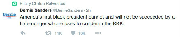 Hillary kostade på sig att retweeta detta Bernietweet nedan. Det tillhör inte vanligheterna att en politiker retweetar en motståndare.